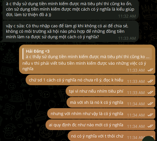 Khi đọc đoạn trên, bạn có để ý thấy câu cuối rất khó hiểu không? Không cần phải đọc bản gốc, mình hỏi chồng mình ngay: “Sử dụng những đồng tiền mình kiếm được một cách có ý nghĩa” là sao?