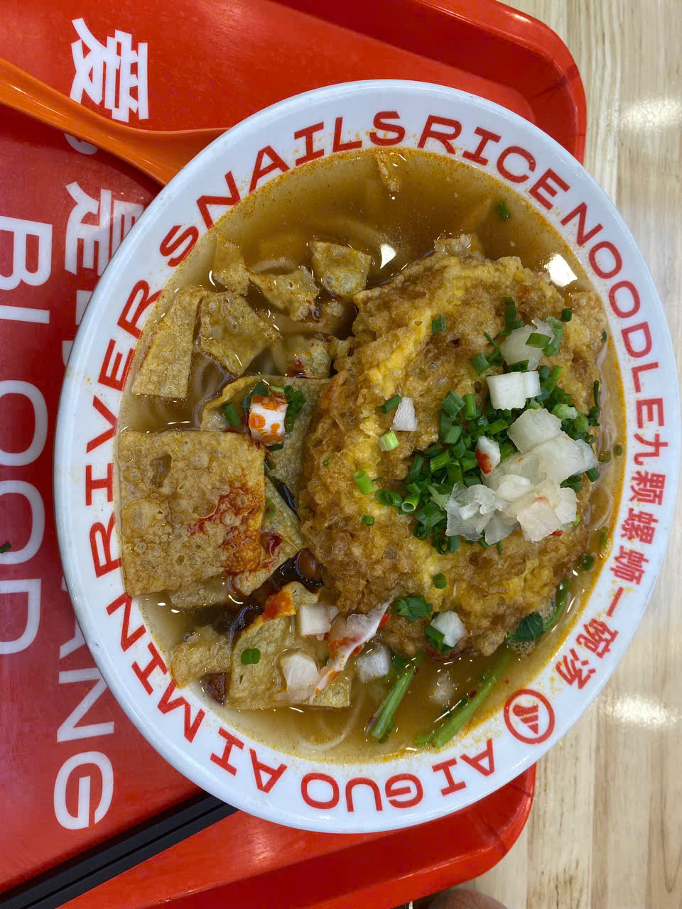 Ở cái xứ này, người ta gọi bát bún ốc này là lousifen – 螺蛳粉. Nó được kết hợp từ mì gạo, nước dùng được hầm trong nhiều giờ liền với các nguyên liệu như: Ốc, xương heo, xương bò, cùng với măng ngâm chua. Ngoài ra ăn kèm với nó là vô vàn thứ khác mà chú ta có thể kể đến là đậu phộng, váng đậu chiên hay có nơi còn gọi là hủ trúc, tàu hũ ki, nấm, củ cải, đậu que, …