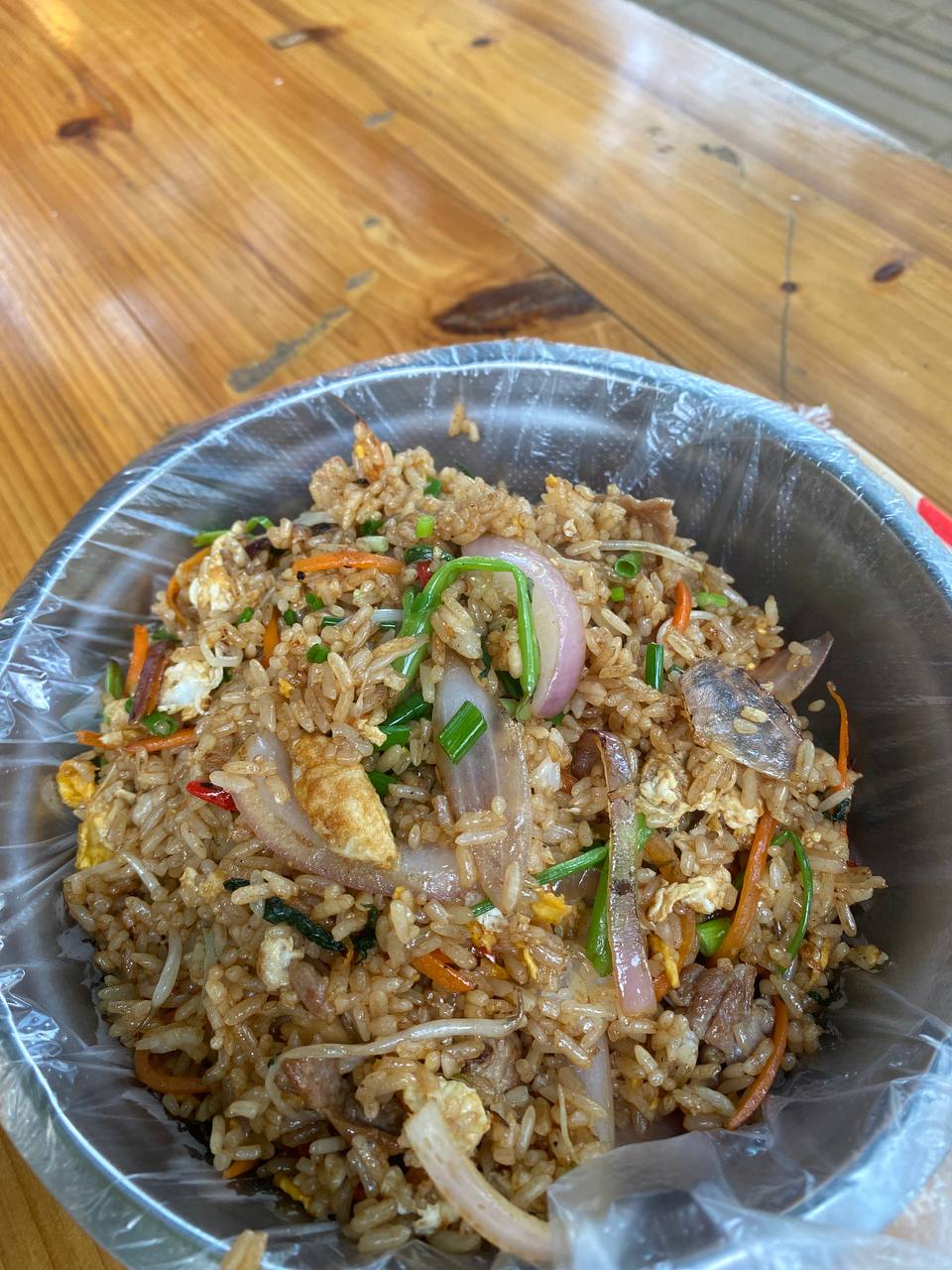Và cơm rang. Cơm rang tôi thích lại không phải cơm rang ở Việt Nam, mà là cơm rang trên những chiếc xe 3 bánh của con đường phố Trung Hoa. Chỉ với vài nguyên liệu thừa trong bếp sau khi nấu ăn hoặc cơm thừa là có một đĩa cơm rang nóng hổi siêu ngon.