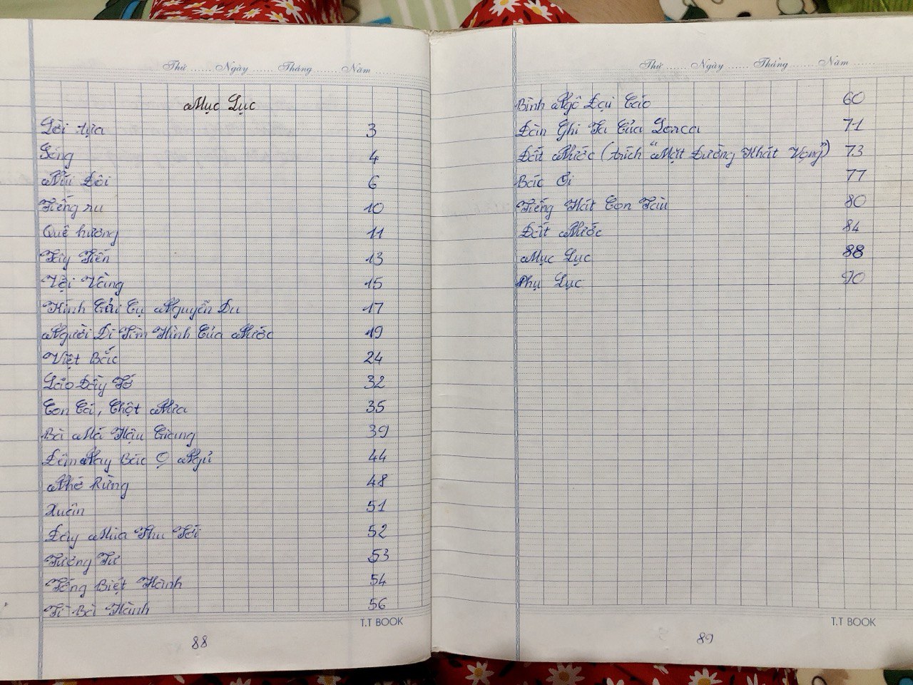 viết tay xấu quắc xong tự ghi số trang kèm mục lục: ✅